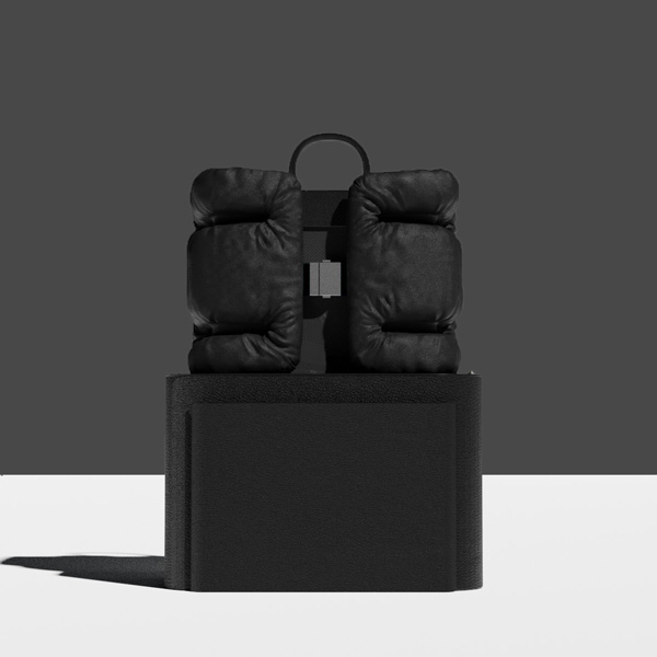 This newly formed silhouette asserts stability provided by a rigid base whilst imbuing a moulded yet functional flaps at the upper half of bag, enclosed with concealed pockets.